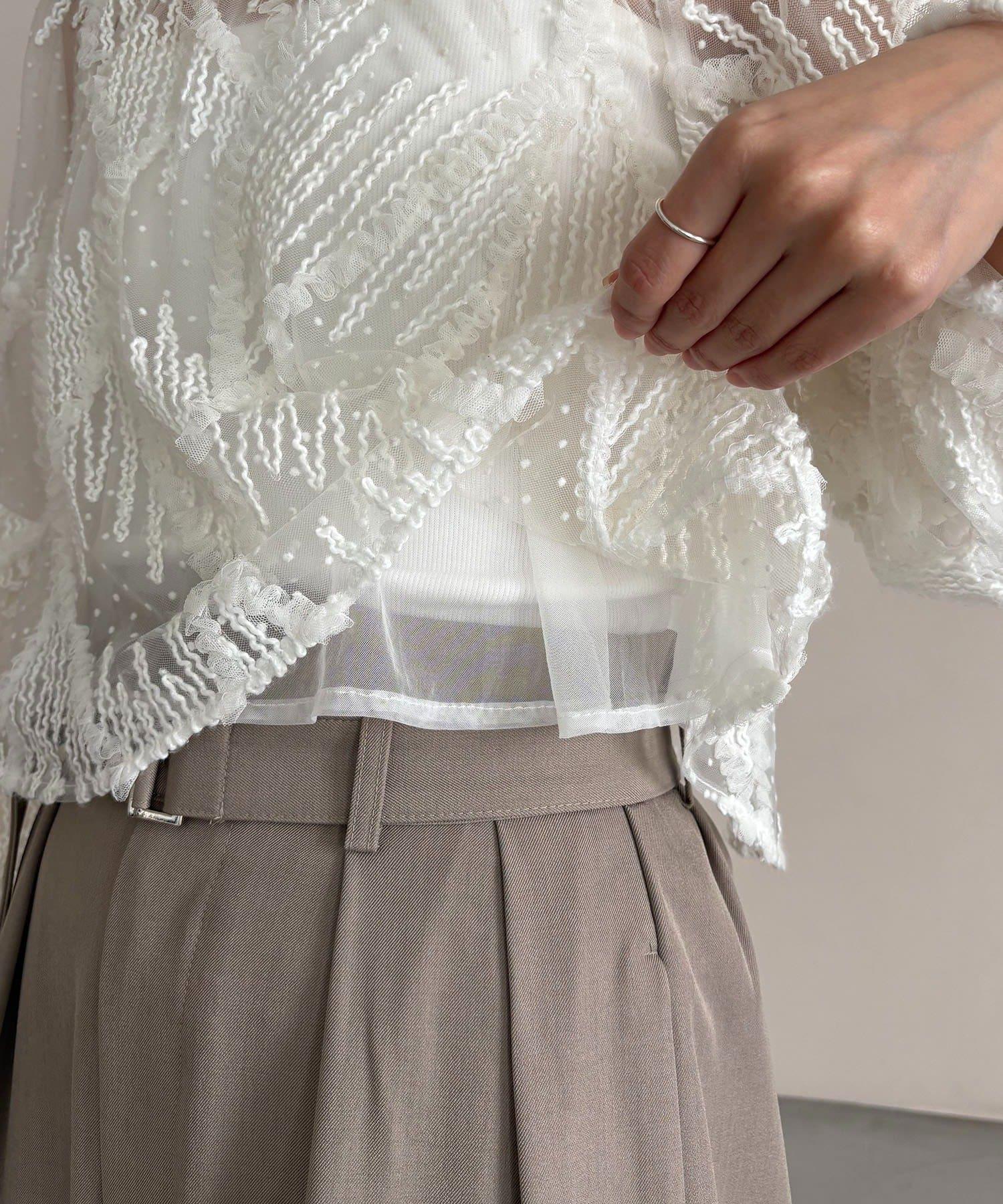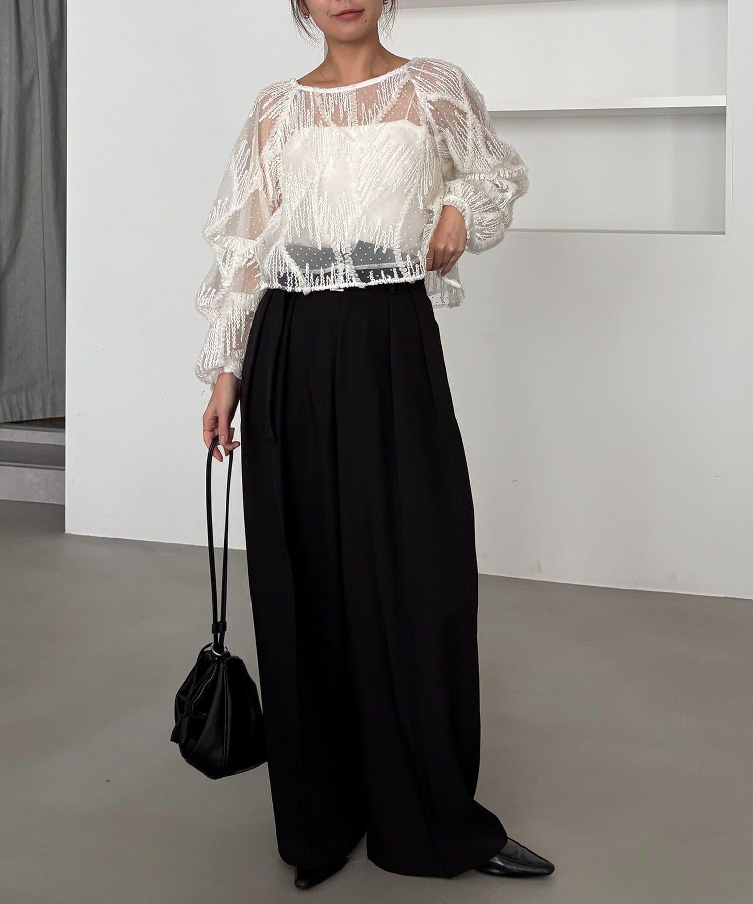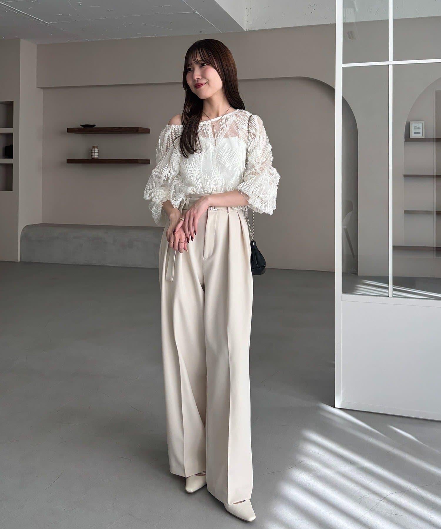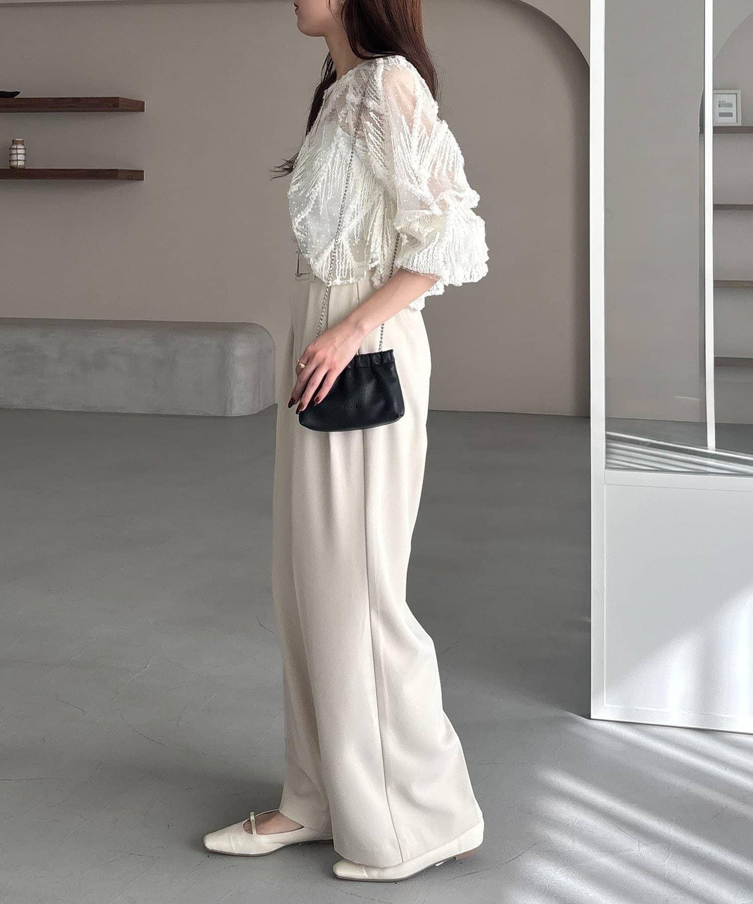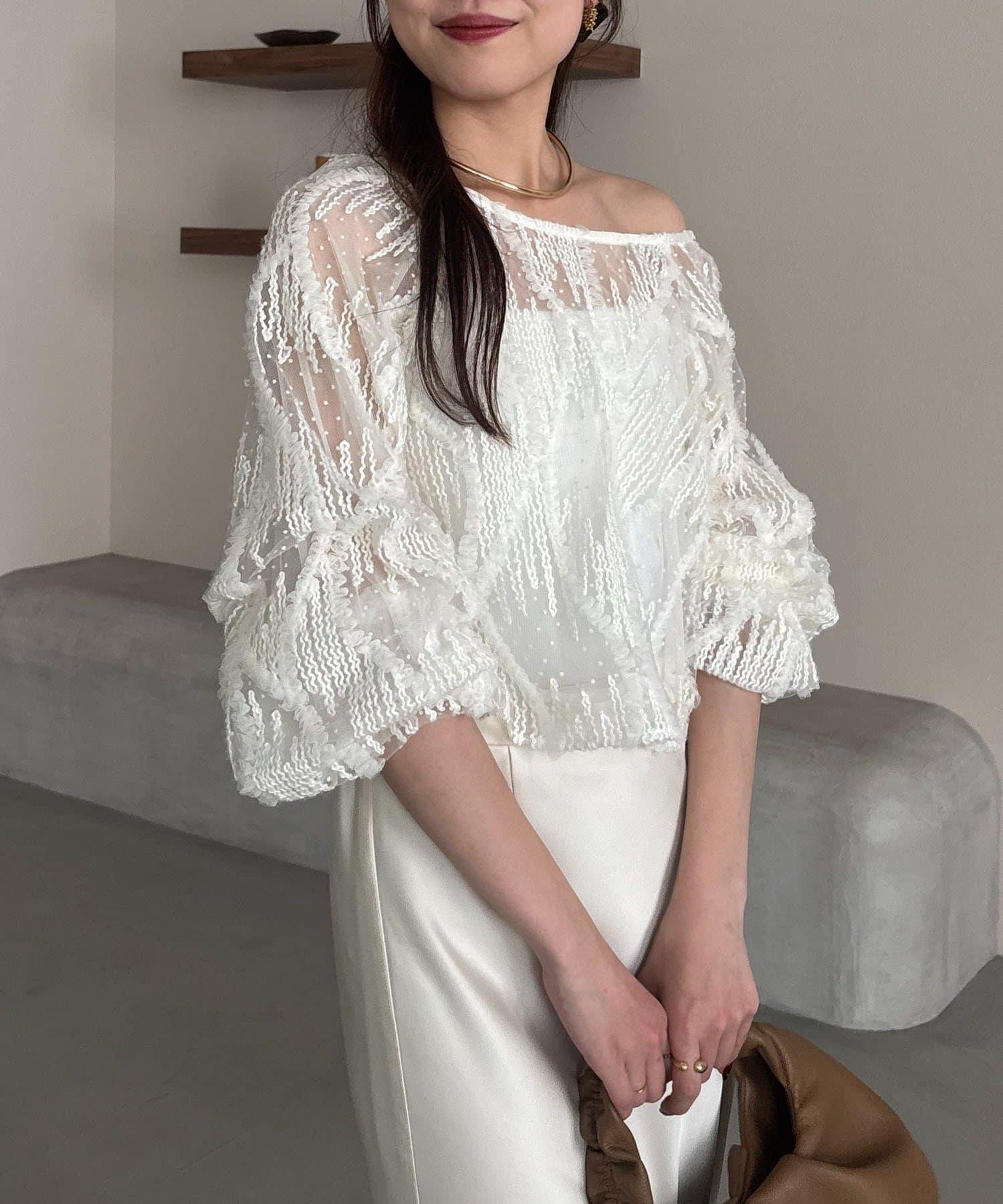 採用點線交織的精緻提花面料,是一款具有獨特表現力的上衣。